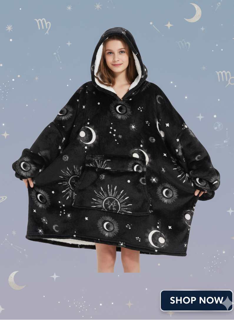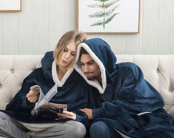 Lamb Fleece Pullover Loose Winter Pajamas Flannel Blanket Pants with Sleeves Hoodie Soft and Warm Home Wear